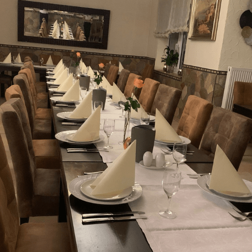 Planen Sie eine besondere Feier? In unserem Restaurant Balkan in Harpstedt bieten wir Ihnen nicht nur mediterrane Köstlichkeiten, sondern auch einen separaten Raum für private Feiern oder Firmenveranstaltungen. Dieser Raum bietet Platz für bis zu 35 Personen und eignet sich ideal für Geburtstage, Jubiläen, Firmenfeiern oder Familienfeste. In privater Atmosphäre können Sie ungestört mit Ihren Gästen feiern und unser erstklassiges Essen genießen. Für größere Veranstaltungen, wie Hochzeiten oder größere Firmenanlässe, können wir Ihnen unser gesamtes Restaurant exklusiv zur Verfügung stellen, sodass bis zu 90 Personen Platz finden. Dabei sorgen wir dafür, dass Ihr Event bis ins kleinste Detail perfekt wird – vom Essen bis hin zur liebevollen Dekoration. Im Restaurant Balkan in Harpstedt finden Sie den idealen Ort, um in stilvollem Ambiente unvergessliche Momente zu feiern. Essen gehen wird bei uns zu einem Erlebnis, das weit über ein gutes Essen hinausgeht.
